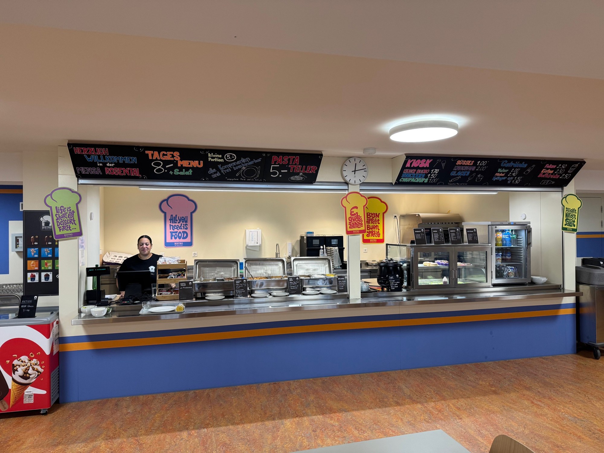 Herzlich willkommen im Schulbistro der Sekundarschule Rosental. In neu eingerichteten, modernen Räumlichkeiten im 4. Stock bieten wir einen Ort und Treffpunkt für Verpflegung an.