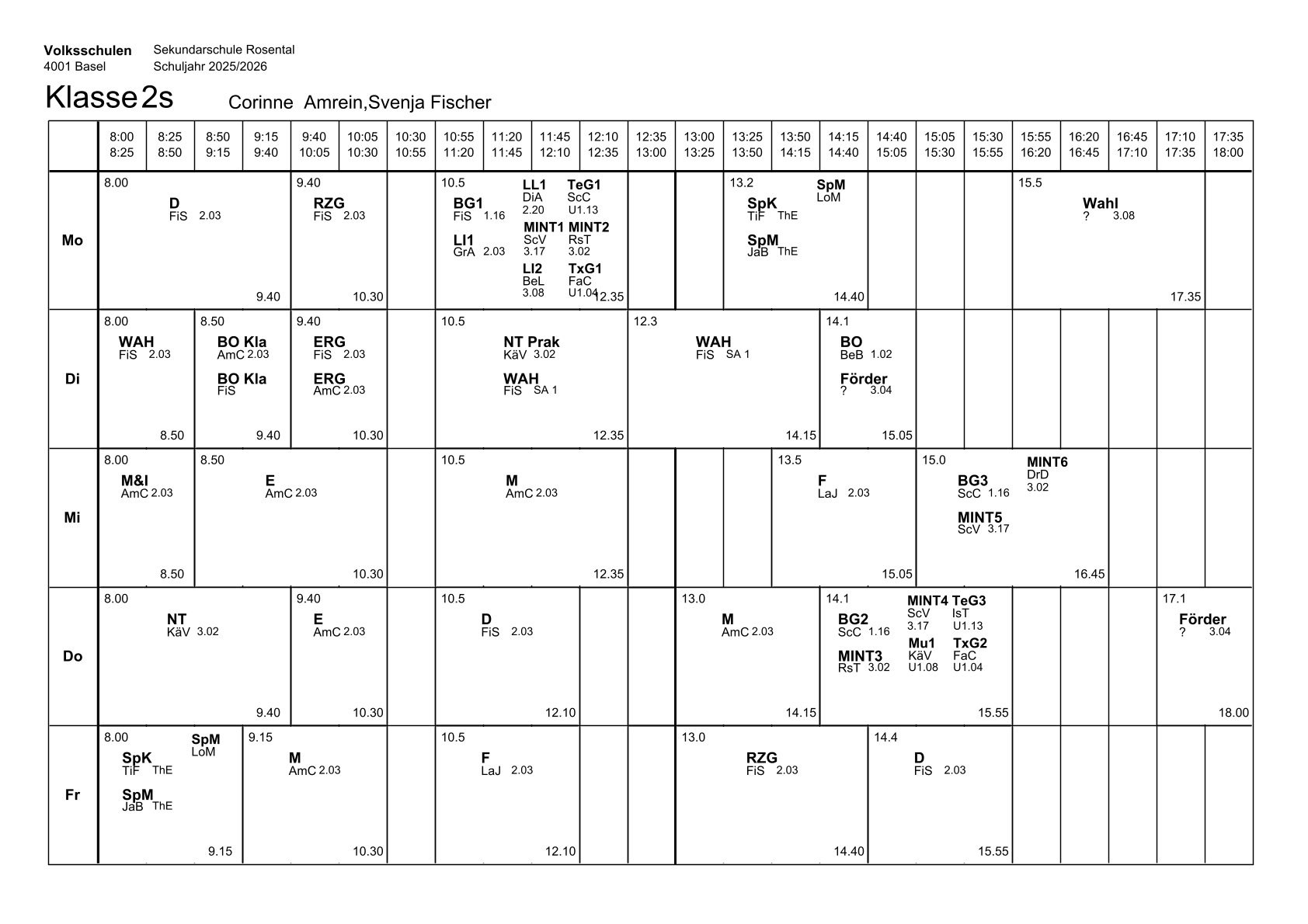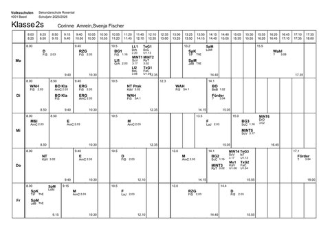 Stundenplan Klasse 2s