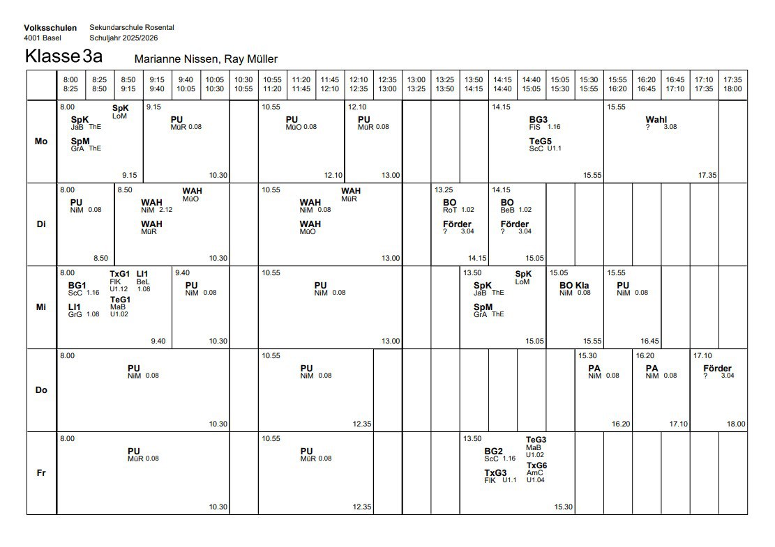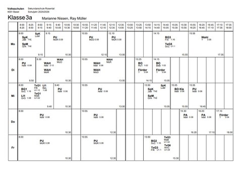 Klassenlehrperson: Marianne Nissen, Ray Müller