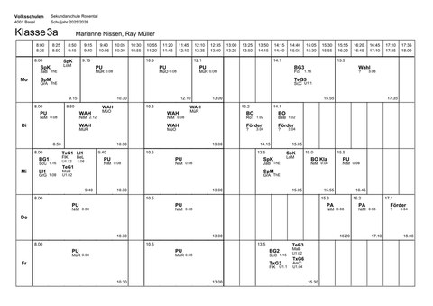Klassenlehrperson: Marianne Nissenmarianne.nissen@edubs.chKlassenzimmer: 0.08Stundenplan