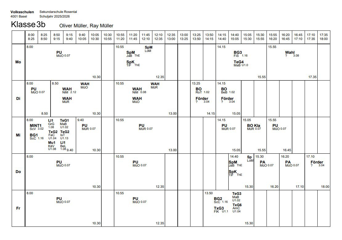 Klassenlehrperson: Oliver Müller, Ray Müller
