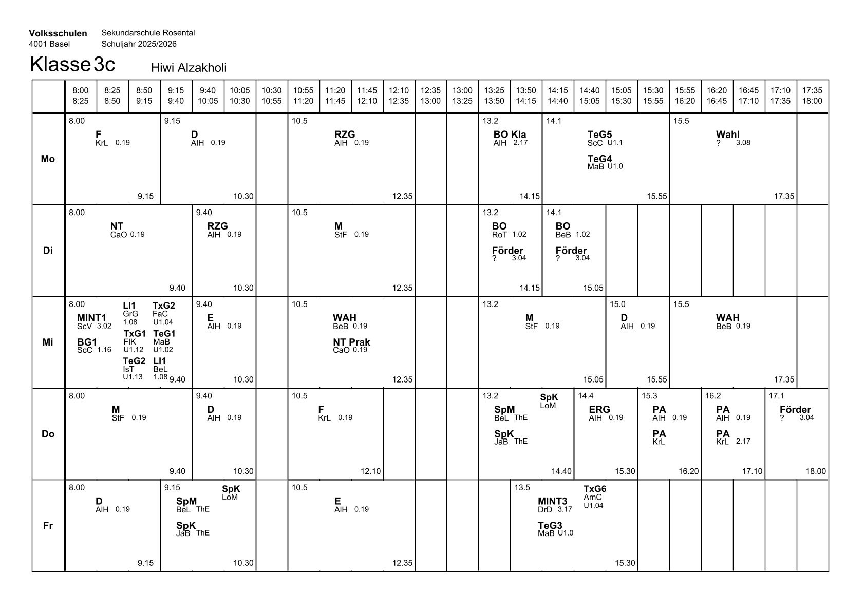 Klassenlehrperson: Hiwi Alzakholihiwi.alzakholi@edubs.chKlassenzimmer: 0.19Stundenplan