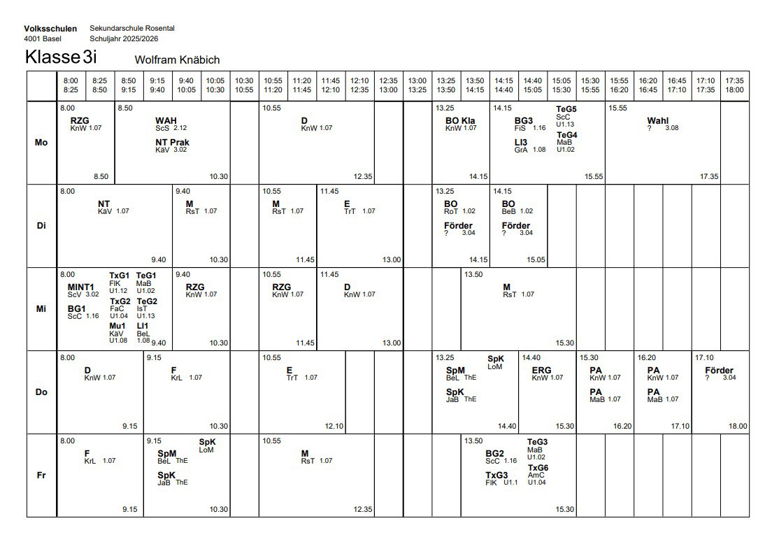 Klassenlehrperson: Wolfram Knäbichwolfram.knaebich@edubs.chKlassenzimmer: 1.07Stundenplan