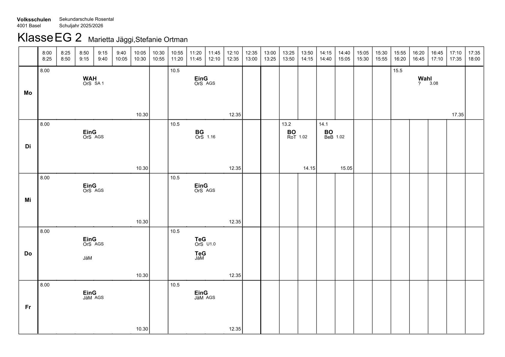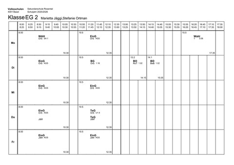 Klassenlehrpersonen: Stefanie Ortman, Marietta Jäggi